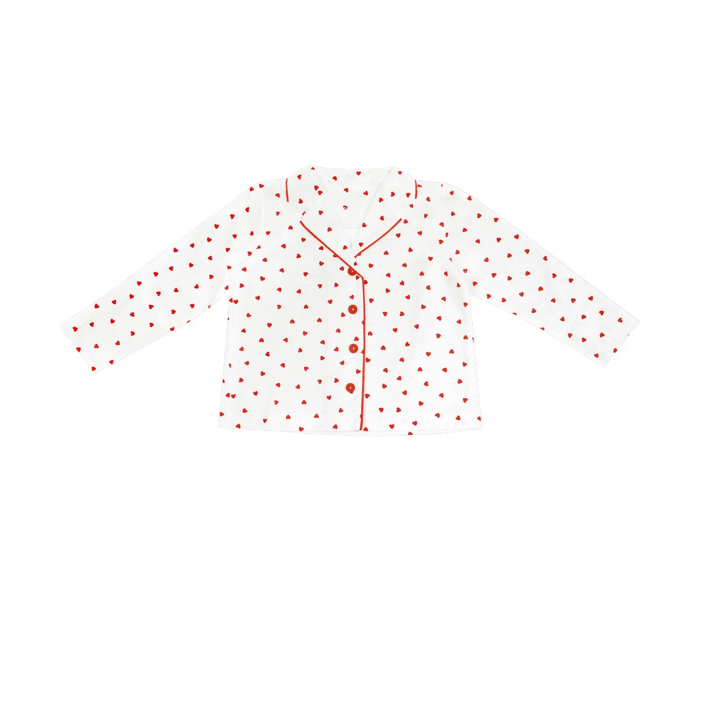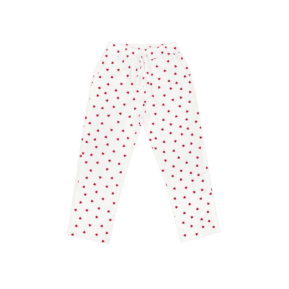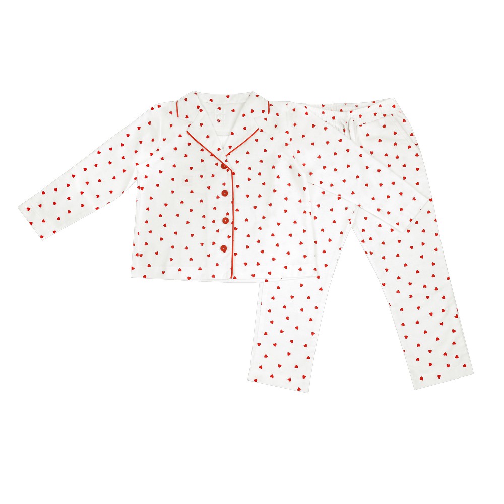 Пижамный комплект для девочки из натуральной хлопковой фланели. Модный комплект в «сердечке» украшен ярким кантом по воротнику и горловине. Имеет классический прямой крой и удобную застежку на пуговицы. Брюки прямые с поясом на резинке. Комплект имеет 100% натуральный состав, приятный на ощупь, не вызывает раздражений и аллергий, хорошо пропускает воздух и впитывает влагу. Обладает теплозащитными свойствами. Соответствует гигиеническим свойствам.Характеристики
