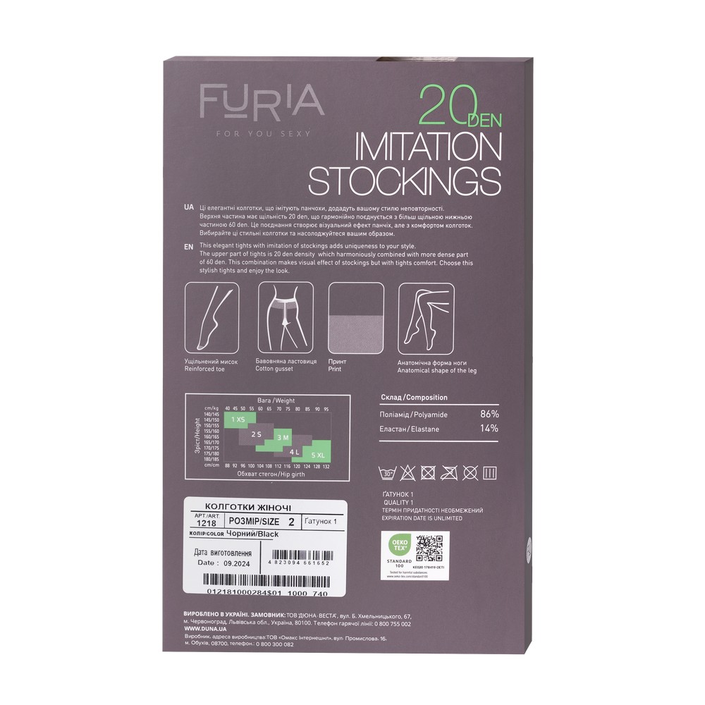 Колготки женские с имитацией чулок, 20 DEN - FURIA 1218