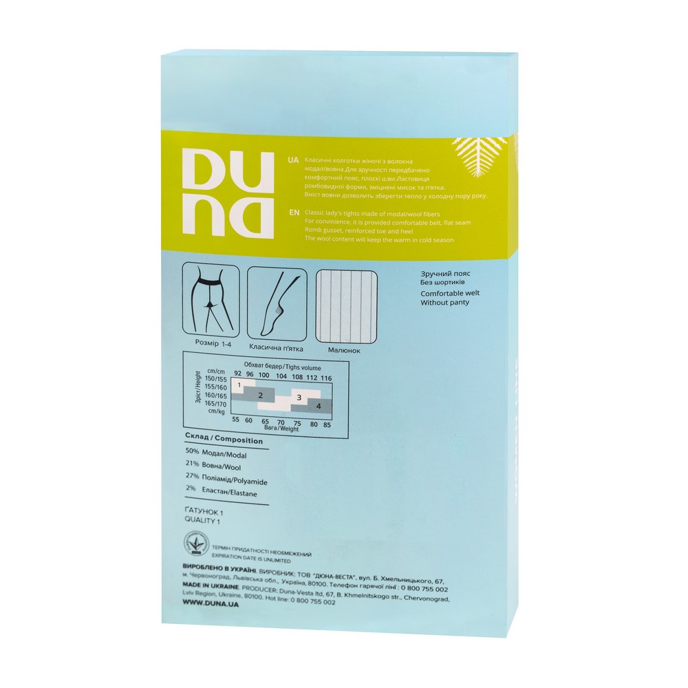 Колготки женские зимние, в рубчик, пряжа с шерстью DUNA 3913