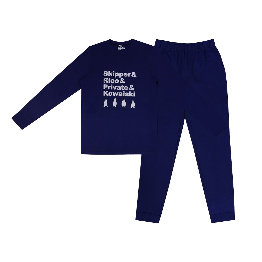 Мужской комплект с лицензионным рисунком "Пингвины Мадагаскар". Набор свободного кроя. Джемпер прямой. Брюки заужены к низу, на манжетах, имеют удобные карманы. Пояс на широкой эластичной резинке. Комплект из трикотажа интерлок благодаря 100% натуральному составу приятен на ощупь, мягкий, не вызывает раздражений и аллергий, хорошо пропускает воздух и впитывает влагу. Обладает теплозащитными свойствами. Благодаря своей плотности износоустойчив. Соответствует гигиеническим свойствам нательной одежды и белья.