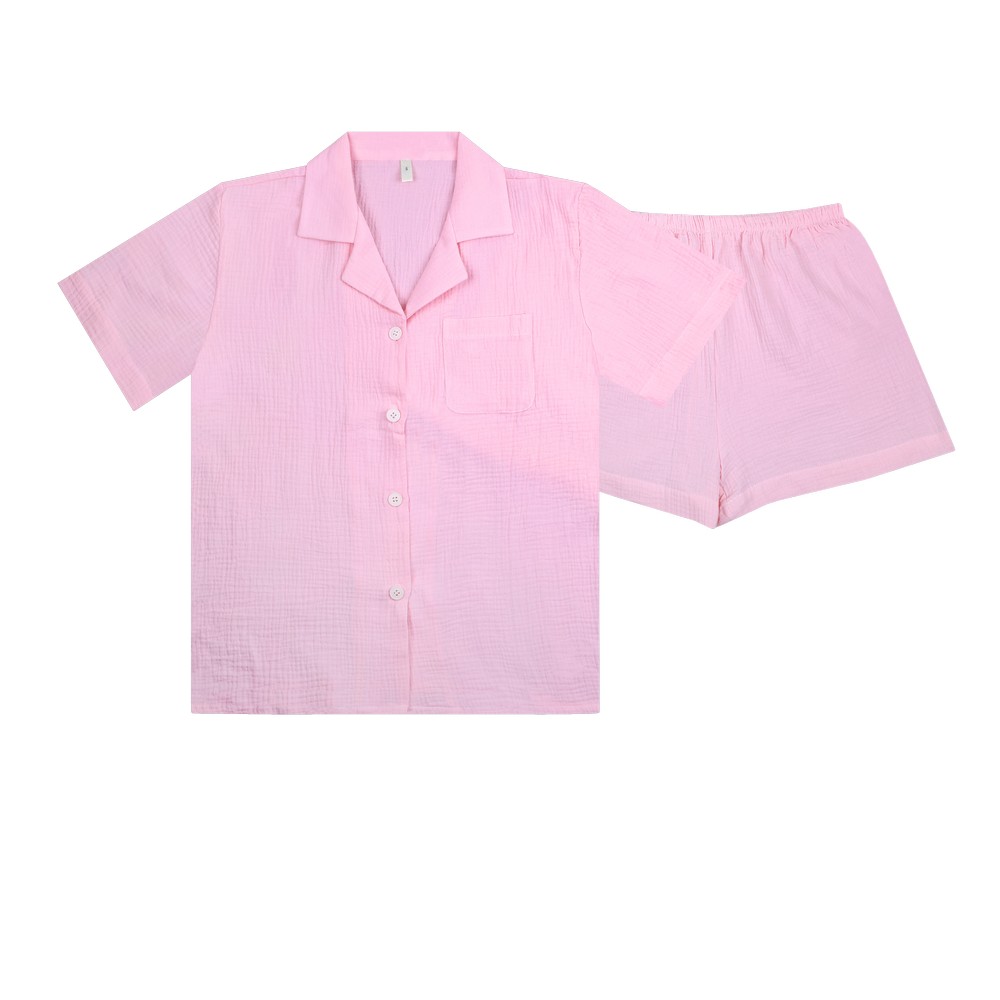 Женский комплект из натурального хлопка «муслин». Комплект состоит из рубашки с коротким рукавом и шорт на резинке. Рубашка с отложным воротником, застежкой на 4 пуговицы. Рубашка украшена нагрудным карманом. Комплект имеет 100% натуральный состав, мягкий и приятный на ощупь, не вызывает раздражения и аллергии, хорошо пропускает воздух и впитывает влагу. Соответствует гигиеническим требованиям, подходит для сна и отдыха.