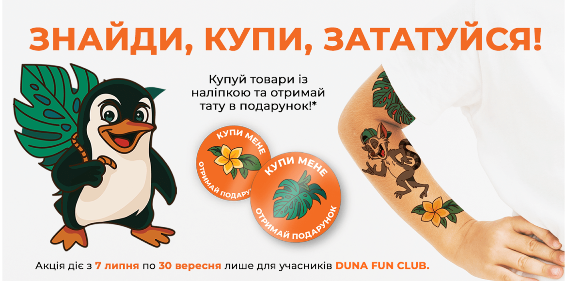 Літо залишає по собі яскраві спогади! З 7 липня по 30 вересня в магазинах DUNA даруємо тимчасове тату.