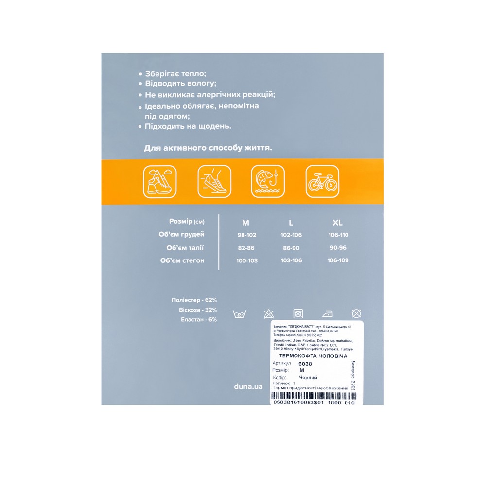 Термокофта мужская DUNA 6038