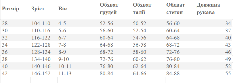 Размер детского белья